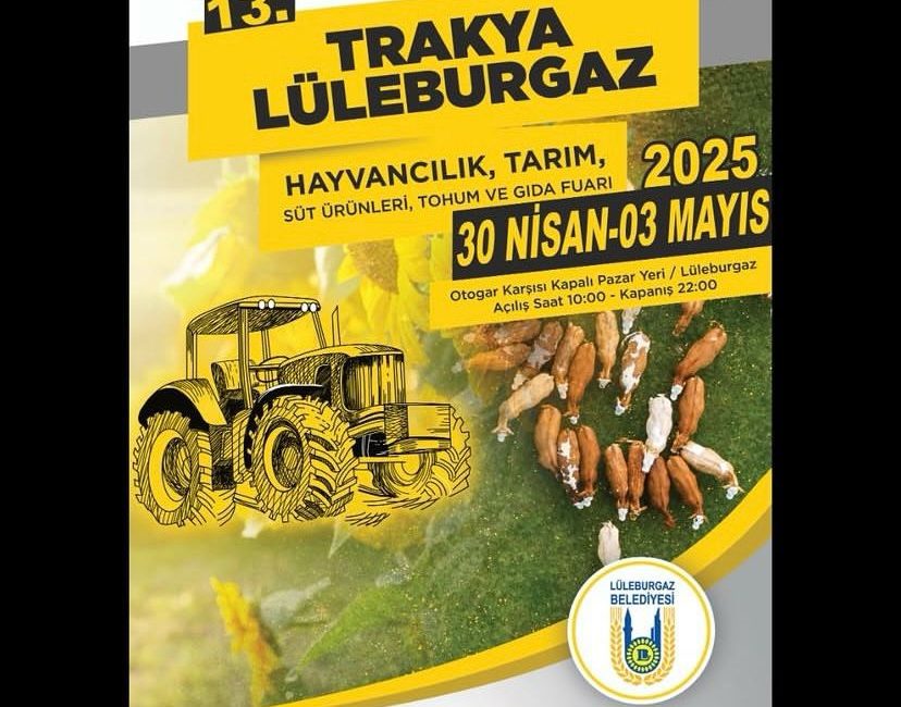 Tarımın, hayvancılığın ve yerel üretimin buluşma noktası 13. Trakya Lüleburgaz Hayvancılık, Tarım, Süt Ürünleri, Tohum ve Gıda Fuarı, 30 Nisan–3 Mayıs 2025 tarihleri arasında Otogar Karşısı Kapalı Pazar Yeri’nde gerçekleşiyor. Her gün 10.00–22.00 saatleri arasında açık olacak fuarda sektöre dair en güncel ürün ve hizmetlerle tanışabilir, tarım dünyasının nabzını tutabilirsiniz.
