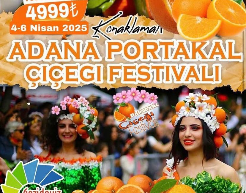 Adana Portakal Çiçeği Karnavalı ve Tarsus Turu, 4-6 Nisan 2025’te Edirne, Kırklareli, Babaeski, Lüleburgaz ve Çorlu hareketli olarak düzenleniyor. 1 gece Mersin konaklamalı tur, Adana’da karnaval alanı, Taş Köprü, Sabancı Camii gibi noktaları; Tarsus’ta ise Kleopatra Kapısı, Nusret Mayın Gemisi, Tarsus Şelalesi gibi tarihi ve doğal güzellikleri kapsıyor. Ulaşım, konaklama, kahvaltı, akşam yemeği, rehberlik ve seyahat sigortası dahil olup, kişi başı 5.000₺, çocuklar için indirimli fiyat seçenekleri mevcut.