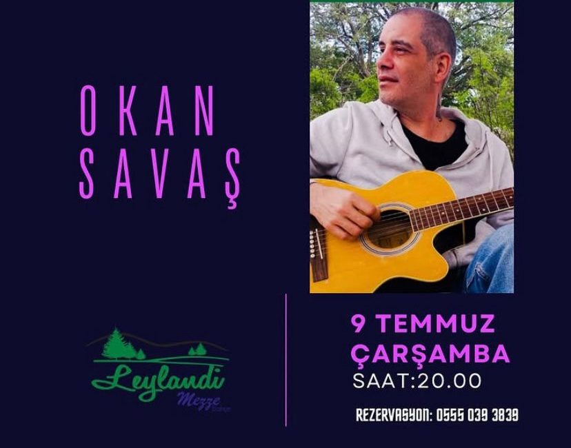 9 Temmuz Çarşamba saat 20.00’da Leylandi Mezze Bahçede gerçekleşecek Akustik Çarşamba etkinliğinde, Okan Savaş’ın samimi ve sıcak performansıyla unutulmaz bir müzik akşamı sizleri bekliyor.