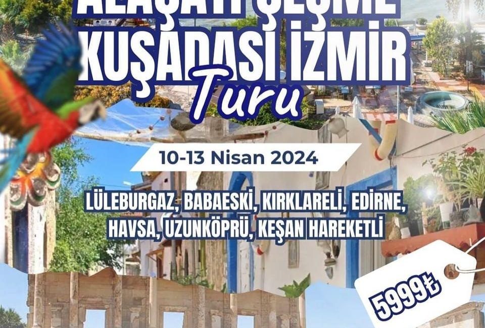 Ramazan Bayramına özel 10-13 Nisan 2024 tarihinde gerçekleşecek Ege Turu, 10 Nisan Çarşamba Bayramın birinci günü hareketlidir. 14 Nisan Pazar sabahı 03:00’da dönmüş olacak şekilde düzenlenen etkinliğin ücreti 5999₺‘dir. Kırklareli merkez için araç hareket noktası saat 20.00’da Kırklareli Eski Rektörlük Önü olacaktır.
