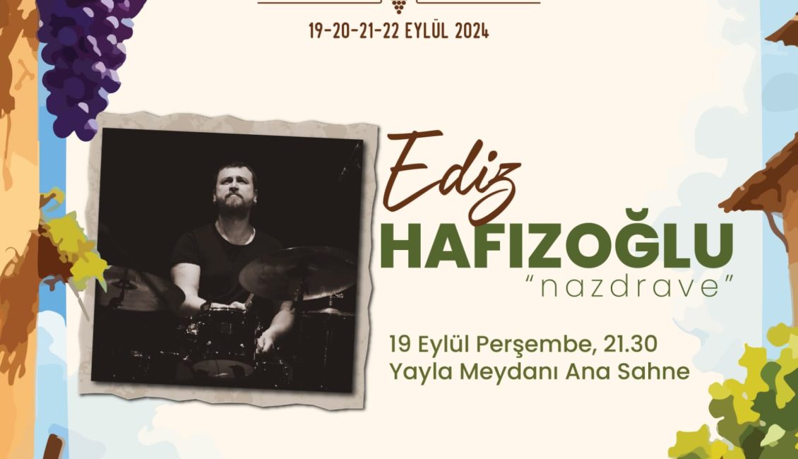 Bağ Bozumu Şenlikleri kapsamında ”Ediz Hafızoğlu” 19 Eylül Perşembe günü, saat 21:30’da Yayla Meydanı Ana Sahne’de yer alacaktır. Tüm Kırklareli halkı davetlidir.