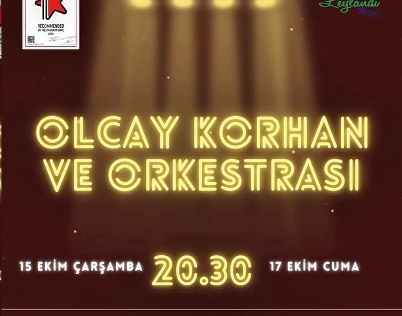 15 Ekim Çarşamba Olcay Korhan ve Orkestrası eşliğinde Leylandi Mezze Bahçe’de canlı müzik keyfi sizleri bekliyor. Saat 20:30’da başlayacak bu özel gece için rezervasyon: 0555 039 38 39.