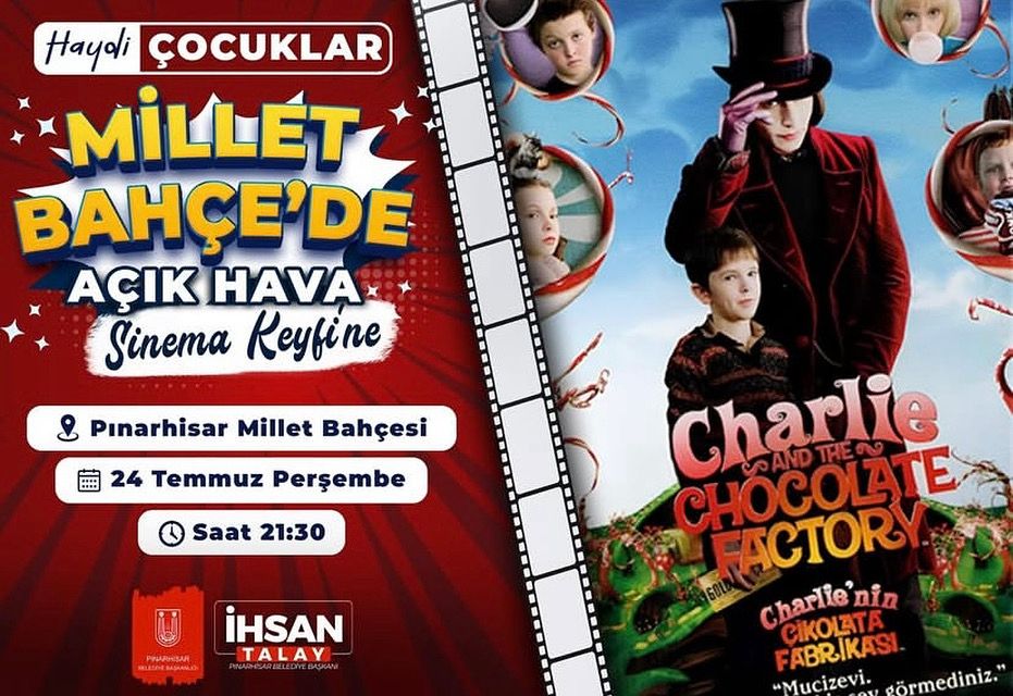 Pınarhisar Millet Bahçesi, 24 Temmuz Perşembe akşamı saat 21.30’da açık hava sinema keyfiyle çocukları ve aileleri ağırlıyor. İlk gösterimde, minik izleyicilerin severek takip ettiği “Charlie’nin Çikolata Fabrikası” filmi perdede olacak. Etkinliğe katılan tüm çocuklara patlamış mısır ve dondurma ikram edilecek. Ailesiyle birlikte yıldızların altında sinema keyfi yaşamak isteyen herkesi bekleyen bu etkinlik ücretsizdir.