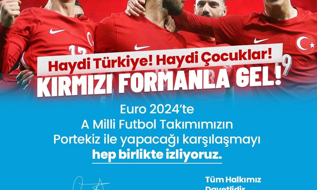 Euro 2024’te A Milli Futbol Takımımızın Portekiz ile yapacağı karşılaşmayı hep birlikte izliyoruz. 22.06.2024 saat 19.00’da Millet Bahçesinde… Tüm halkımız davetlidir. 🙏