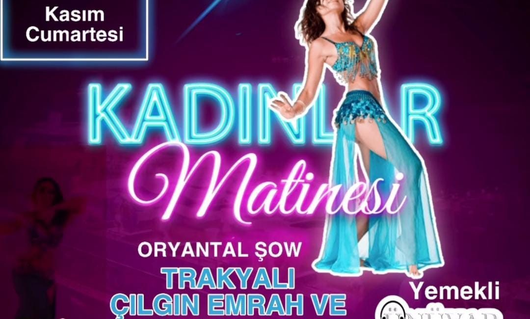 16 Kasım 2024 Cumartesi akşamı, Kırklareli Ünuvar’da unutulmaz bir eğlenceye hazır olun! 💃 Kadınlar Matinesi sizleri, Trakyalı Çılgın Emrah ve oryantal şovlarla müziğin ve dansın doruklarına çıkaracak. 🎶🔥 Saat 20.00-00.00 arasında gerçekleşecek bu özel gecede, darbuka, davul, org ve solistlerin canlı performanslarıyla ritme kapılacaksınız. Giriş ve yemek dahil olan bilet fiyatı sadece 650₺. 🥗🍗🥤 Hem eğlenin hem de lezzetli yemeklerin tadını çıkarın! 💫