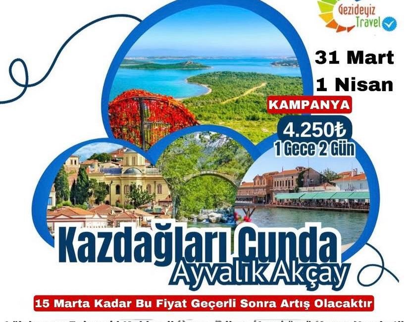 31 Mart 1 Nisan tarihlerinde Gezideyiz Travel öncülüğünde konaklamalı ”Kazdağları, Cunda, Ayvalık ve Akçay Turu” gerçekleştirilecektir. 1 gece 2 gün şeklinde gerçekleştirilecek etkinliğin ücreti 4250₺’dir. Kırklareli merkez için araç hareket noktası Kırklareli Eski Rektörlük Önü olup, saat 00.30’da araç hareket edecektir.