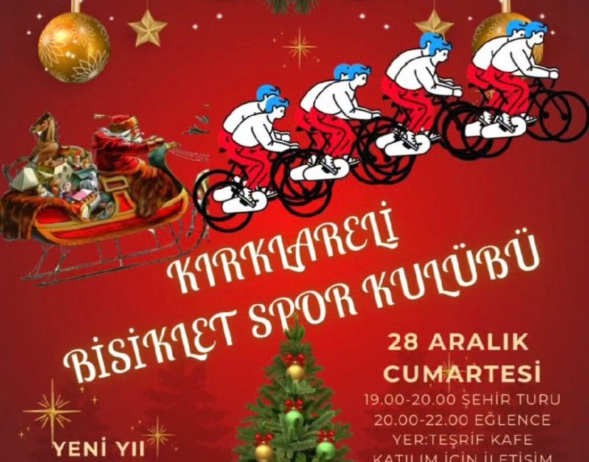 Kırklareli Bisiklet Spor Kulübü ile Yeni Yıl Eğlencesine Davetlisiniz! 🎄 28 Aralık Cumartesi günü gerçekleşecek bu keyifli etkinlikte, yeni yıla pedal çevirerek ve eğlenerek gireceğiz!
