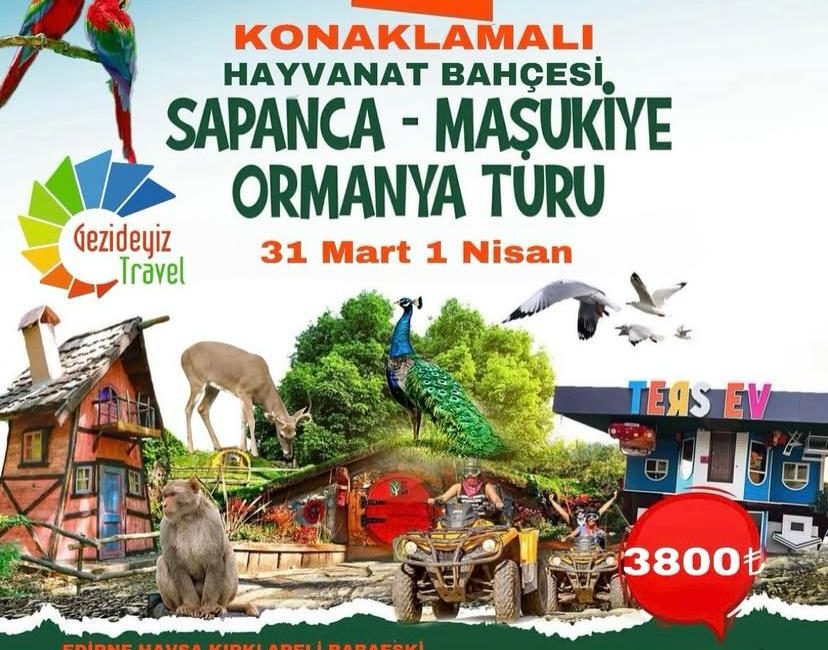 🌿 31 Mart – 1 Nisan tarihlerinde doğa ve eğlence dolu bir maceraya hazır olun. Sapanca, Maşukiye, Ormanya ve Hayvanat Bahçesi gezileriyle huzuru keşfedecek, Max Fun Eğlence Merkezi’nde adrenalini doruklarda yaşayacaksınız. 🚀