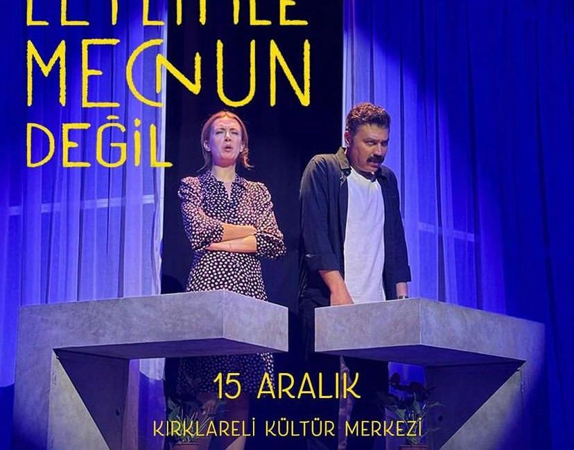 ”Leyla İle Mecnun Değil” tiyatro oyunu 15 Aralık 2024 Pazar günü Kırklareli Kültür merkezinde gerçekleşecektir.