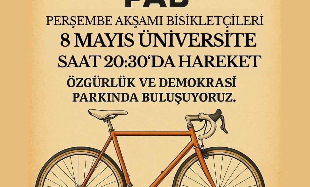 8 Mayıs Perşembe akşamı saat 13.00’de Özgürlük ve Demokrasi Parkı’ndan hareketle Kavaklı rotasında bisiklet turu yapıyoruz! Kask, aydınlatma ve reflektör zorunludur. 18 yaş altı sadece ebeveynle katılabilir. Güvenli ve keyifli bir tur için kurallara uyalım.