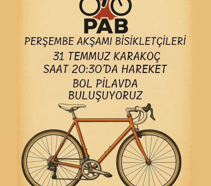 31 Temmuz Perşembe akşamı saat 20.30’de İstasyon Caddesi’nden hareketle Karakoç rotasında bisiklet turu yapıyoruz! Kask, aydınlatma ve reflektör zorunludur. 18 yaş altı sadece ebeveynle katılabilir. Güvenli ve keyifli bir tur için kurallara uyalım.