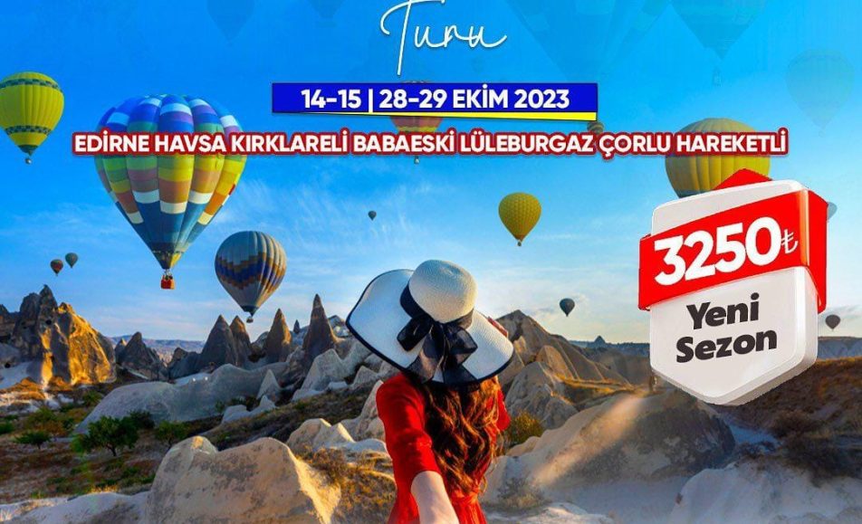 🌴KONAKLAMALI KAPADOKYA TURU🌴 🔵2 GÜN 1 GECE KONAKLAMALI 🚀TARİH :14-15 ve 28-29 Ekim 📌 Fiyat : 3250₺ ☎️Bilgi ve kayıt için arayınız 0544 288 77 39 – 0288 212 77 39 ‼️Edirne Havsa Kırklareli Babaeski Lüleburgaz Çorlu hareketli🍀🌲 💠GEZİLECEK NOKTALAR...