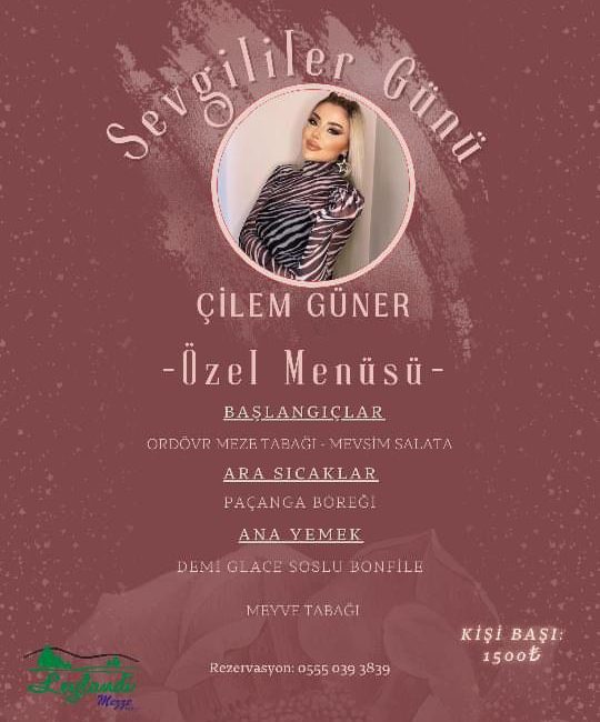 📍 14 Şubat’ta Leyalandi Mezze Bahçe’de Çilem Güner’le sevgi dolu bir gece için sizleri bekliyoruz ❤