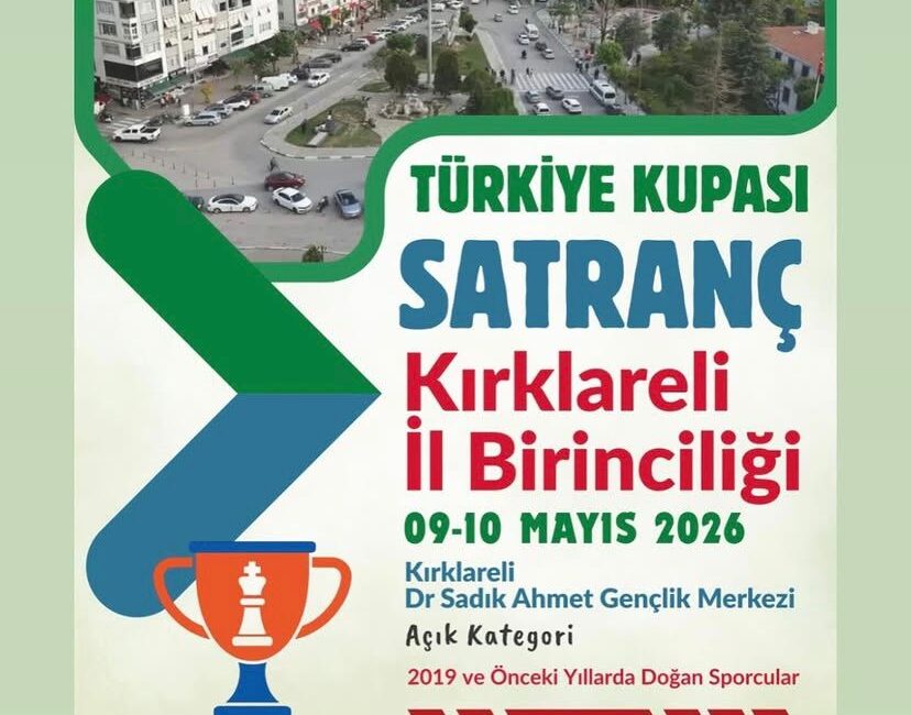 Satranç tutkunları Kırklareli’nde buluşuyor! ♟️ Türkiye Kupası Kırklareli İl Birinciliği, 09-10 Mayıs 2026’da Dr. Sadık Ahmet Gençlik Merkezi’nde düzenlenecek olup, açık kategoride 2019 ve öncesi doğumlu sporcuların katılımına açıktır; detaylı bilgi ve kayıt için kirklareli.tsf.org.tr adresini ziyaret edebilirsiniz. Etkinlik saatleri değişiklik gösterebilir.