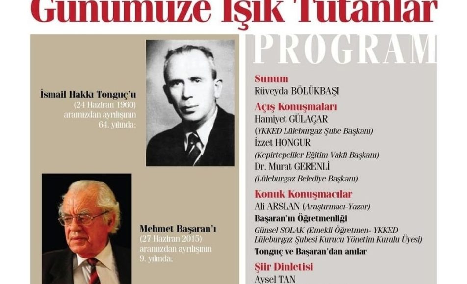 “Uygarlık Yolunda İki Meşale: İsmail Hakkı Tonguç ve Mehmet Başaran” anma töreni, 27 Haziran 2025 Cuma günü saat 18.00’de Lüleburgaz Mehmet Başaran Alanı’nda gerçekleşecek. Lüleburgaz Belediyesi tarafından düzenlenen bu anlamlı etkinliğe tüm halkımız davetlidir. İletişim: @luleburgazbld