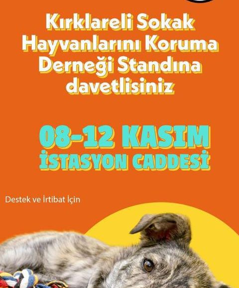 ✨ Kırklareli Sokak Hayvanları Koruma Derneği 08-12 Kasım tarihleri arasında İstasyon Caddesinde stant kurulumu gerçekleştirecektir. Sizler de minik dostlarımıza yardım etmek isterseniz. Standa uğramayı unutmayın! 😊