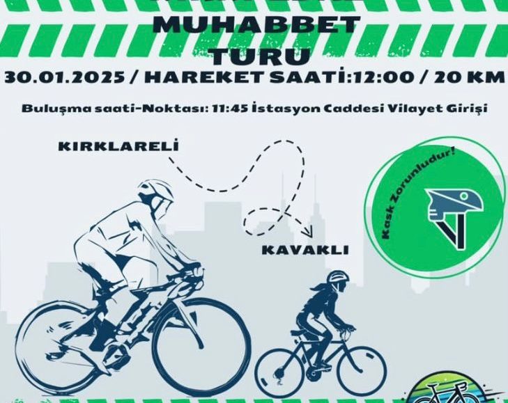 Sevgili bisiklet sever dostlarımız, Muhteşem Perşembe Bisiklet Turu 17.04.2025 tarihinde saat 19.30’da gerçekleştirilecektir. Yer: Millet Bahçesi Trenin Önü İletişim: @kirklarelibisiklet