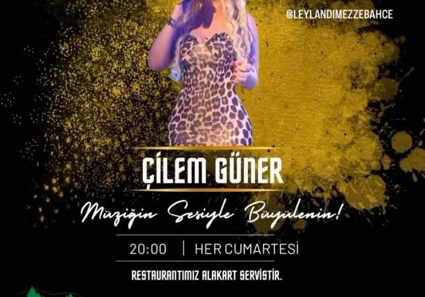📍Leylandi Mezze Bahçe’de, 5 Nisan Cumartesi akşamı Çilem Güner’le muhteşem bir geceye davetlisiniz. Rezervasyon: 0555 039 3839