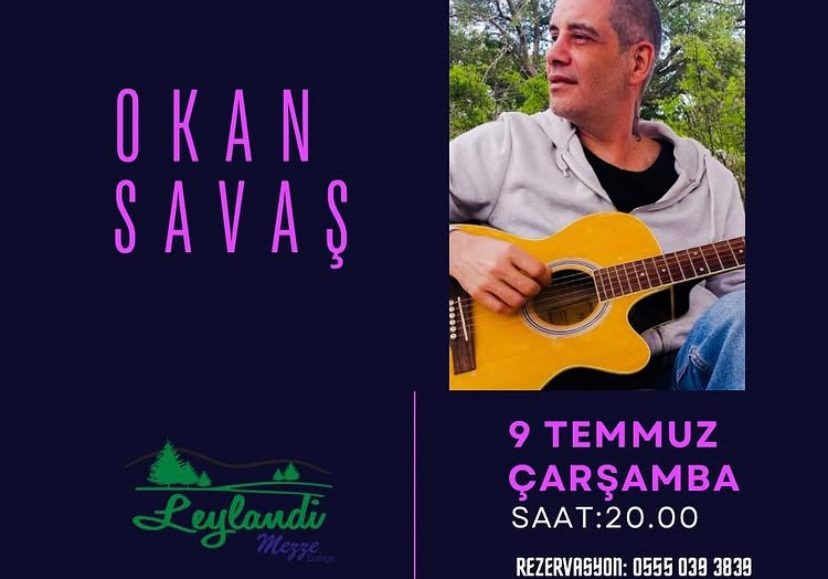 9 Temmuz Çarşamba saat 20.00’da Leylandi Mezze Bahçede gerçekleşecek Akustik Çarşamba etkinliğinde, Okan Savaş’ın samimi ve sıcak performansıyla unutulmaz bir müzik akşamı sizleri bekliyor. İletişim: 0555 039 39 39