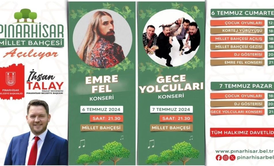 Pınarhisar Belediyesi’nin düzenlediği muhteşem bir etkinlikle ünlü sanatçı Gece Yolcuları, 7 Temmuz Pazar günü saat 21.00’da Pınarhisar Millet Bahçesi’nde sahne alacak. Bu harika konser deneyimini kaçırmayın! Etkinlik ücretsizdir. Herkesi bu eşsiz geceye bekliyoruz!