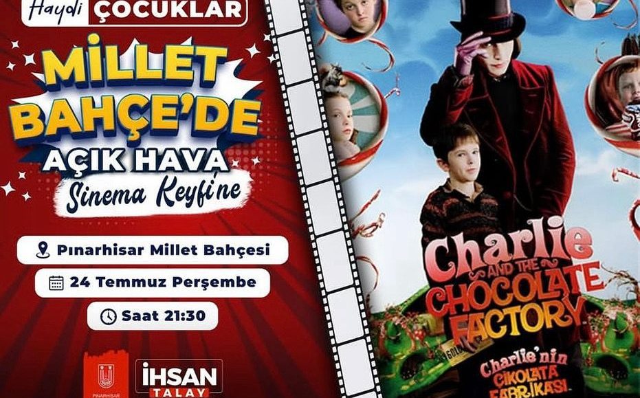 Pınarhisar Millet Bahçesi, 24 Temmuz Perşembe akşamı saat 21.30’da açık hava sinema keyfiyle çocukları ve aileleri ağırlıyor. İlk gösterimde, minik izleyicilerin severek takip ettiği “Charlie’nin Çikolata Fabrikası” filmi perdede olacak. Etkinliğe katılan tüm çocuklara patlamış mısır ve dondurma ikram edilecek....