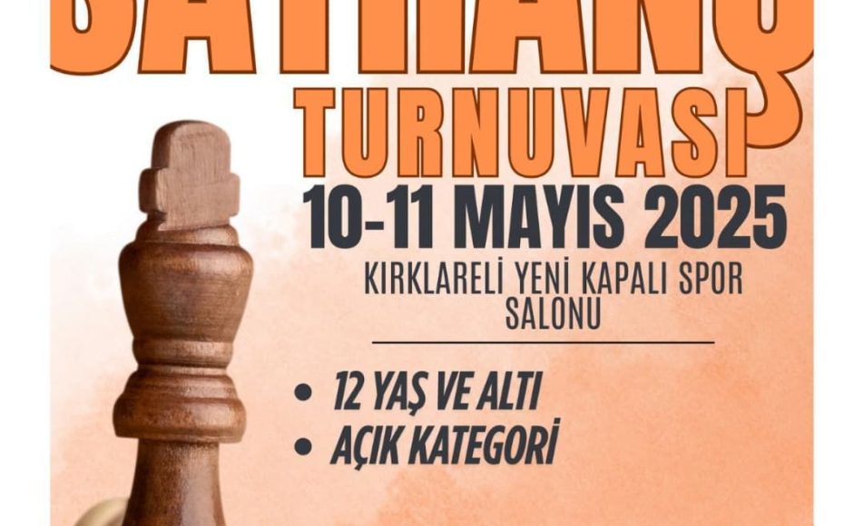 10-11 Mayıs tarihlerinde, Kırklareli Gençlik ve Spor İl Müdürlüğü ile Türkiye Satranç Federasyonu iş birliğinde düzenlenen Gençlik Haftası Satranç Turnuvası, Kırklareli Yeni Kapalı Spor Salonu’nda gerçekleşecektir. Turnuva, 12 Yaş ve Altı ile Açık Kategori olmak üzere iki ayrı grupta düzenlenecektir....