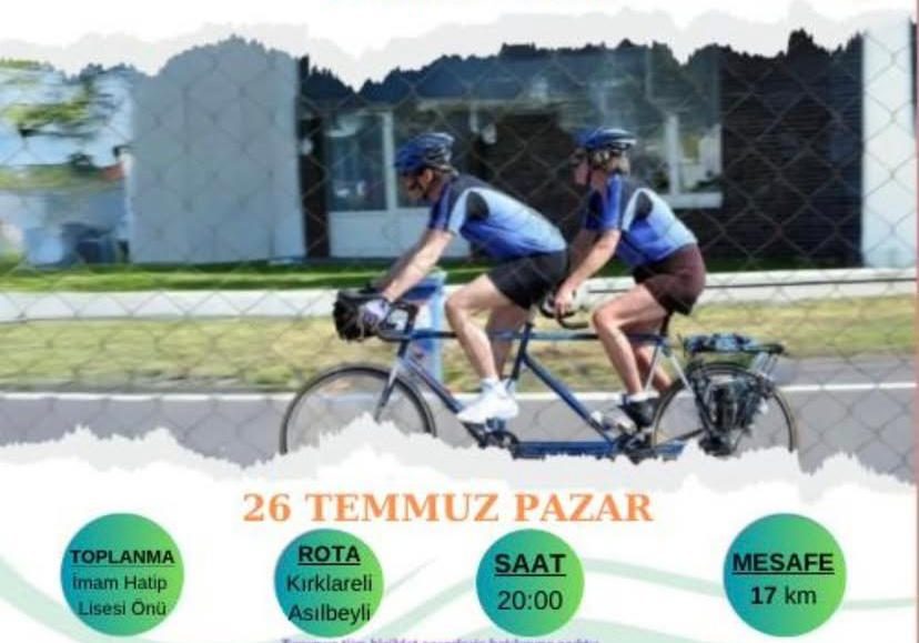 ESPEDAL tarafından 26 Temmuz Pazar günü düzenlenecek olan Bisiklet Turu, saat 20.00’de İmam Hatip Lisesi önünden başlayacak. Kırklareli Asilbeyli rotasında 17 km sürecek bu keyifli etkinlik, tüm bisiklet severlere açık olacak. Katılım için kask ve reflektörlü yelek gibi güvenlik ekipmanlarının...