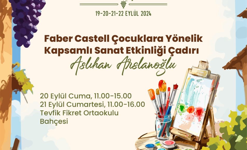 Kırklareli Yayla Bolluk, Bereket, Hasat ve Bağ Bozumu Şenlikleri kapsamında 20.09.2024 Cuma, saat 11.00-15.00 arasında ”Faber Castell Çocuklara Yönelik Kapsamlı Sanat Etkinliği” sizlerle! İletişim: @kirklarelibelediyesi @kirklarelikentkonseyi