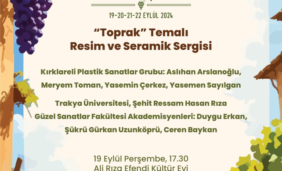 15. Kırklareli Yayla Bolluk, Bereket, Hasat ve Bağ Bozumu Şenlikleri kapsamında 19.09.2024 Perşembe, saat 17.30’de ”Toprak Temalı Resim ve Seramik Sergisi” sizlerle! İletişim: @kirklarelibelediyesi @kirklarelikentkonseyi