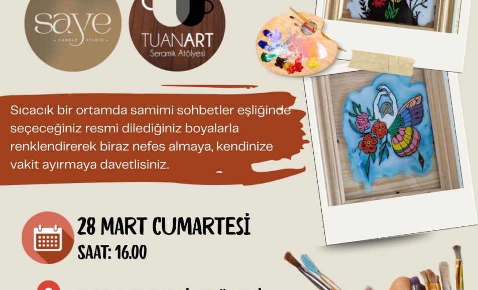 7 Mart Cumartesi günü gerçekleşecek bu keyifli atölyede katılımcılar camaltı boyama sanatını deneyimleyerek kendi eserlerini oluşturma fırsatı bulacak. Tüm malzemelerin sağlanacağı etkinlikte ilham dolu ve keyifli bir ortam katılımcıları bekliyor. Yerler sınırlıdır. Kadınlar Günü’nde kendine özel bir hediye vermek isteyenler...