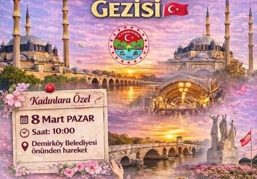 Demirköy Belediyesi tarafından 8 Mart Dünya Kadınlar Günü’ne özel kadınlara yönelik Edirne Tarihi ve Kültürel Gezi Programı düzenlenmektedir. 8 Mart Pazar günü saat 10:00’da Demirköy Belediyesi önünden hareket edilecek program kapsamında Selimiye Camii, Eski Cami, Üç Şerefeli Cami, Meriç Köprüsü,...