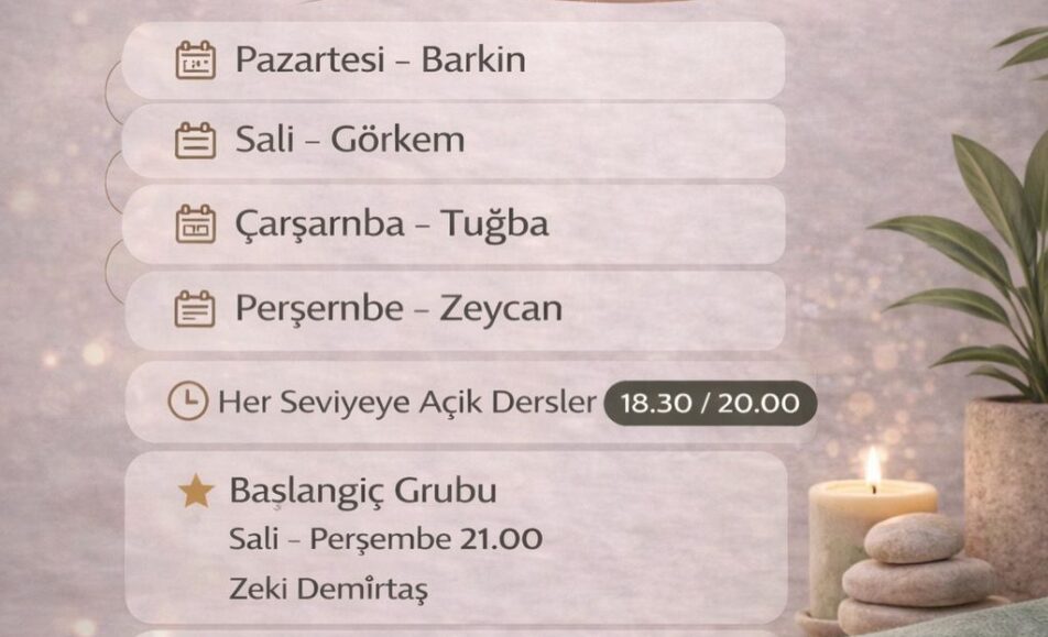 Katılımcılara kendileri için küçük bir mola fırsatı sunan nefes, denge ve farkındalık yolculuğu, haftada bir gün, Cuma günü saat 19.00’da gerçekleştirilmektedir. Kontenjan sınırlı olup, yerinizi ayırtmak için 0553 004 82 77 numaralı telefon üzerinden iletişime geçebilirsiniz.